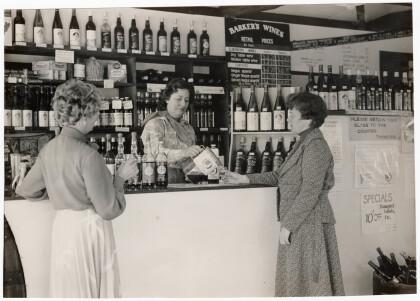 Two woman are offered samples of drink at Barkers Wines, ...