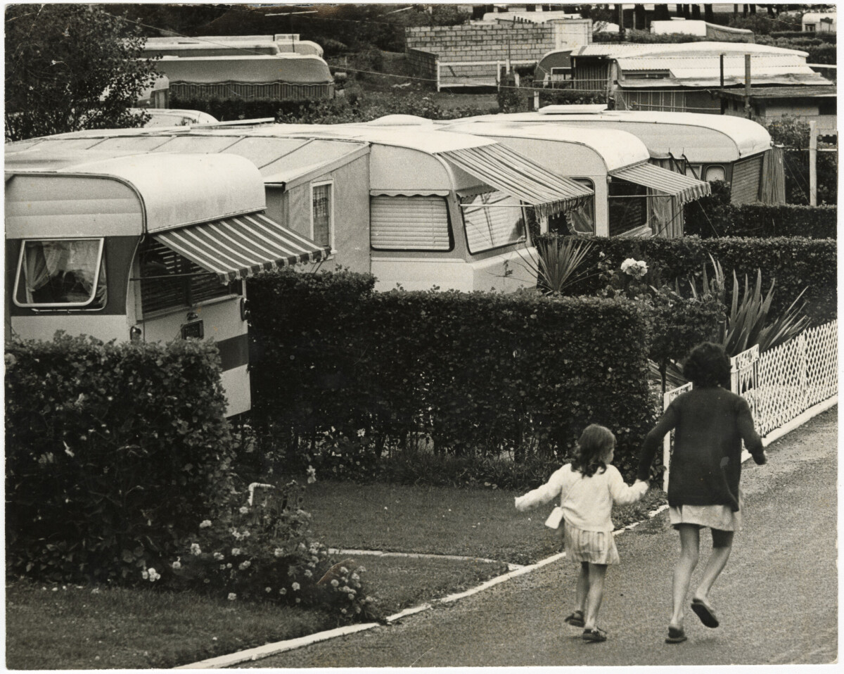 View of caravans with neatly pruned hedges separating the sections at Kairaki Beach motor camp near Kaiapoi, where a number of people live permanently.