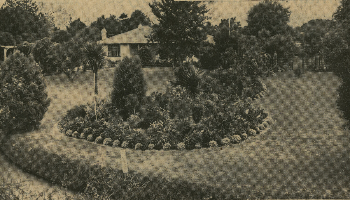Awarded first in the north-east section of the Christchurch Beautifying Association's annual competition 1938.