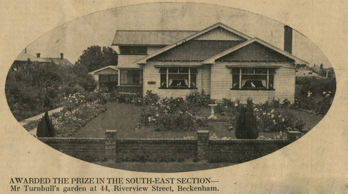 Awarded the prize in the south-east section of the Christchurch Beautifying Association's annual competition 1938.