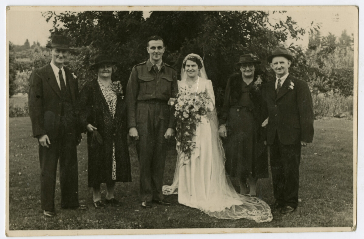 Wedding of Jim Radliffe and Betty Martin. With Mr & Mrs Radcliffe and Arthur David Martin and his wife.