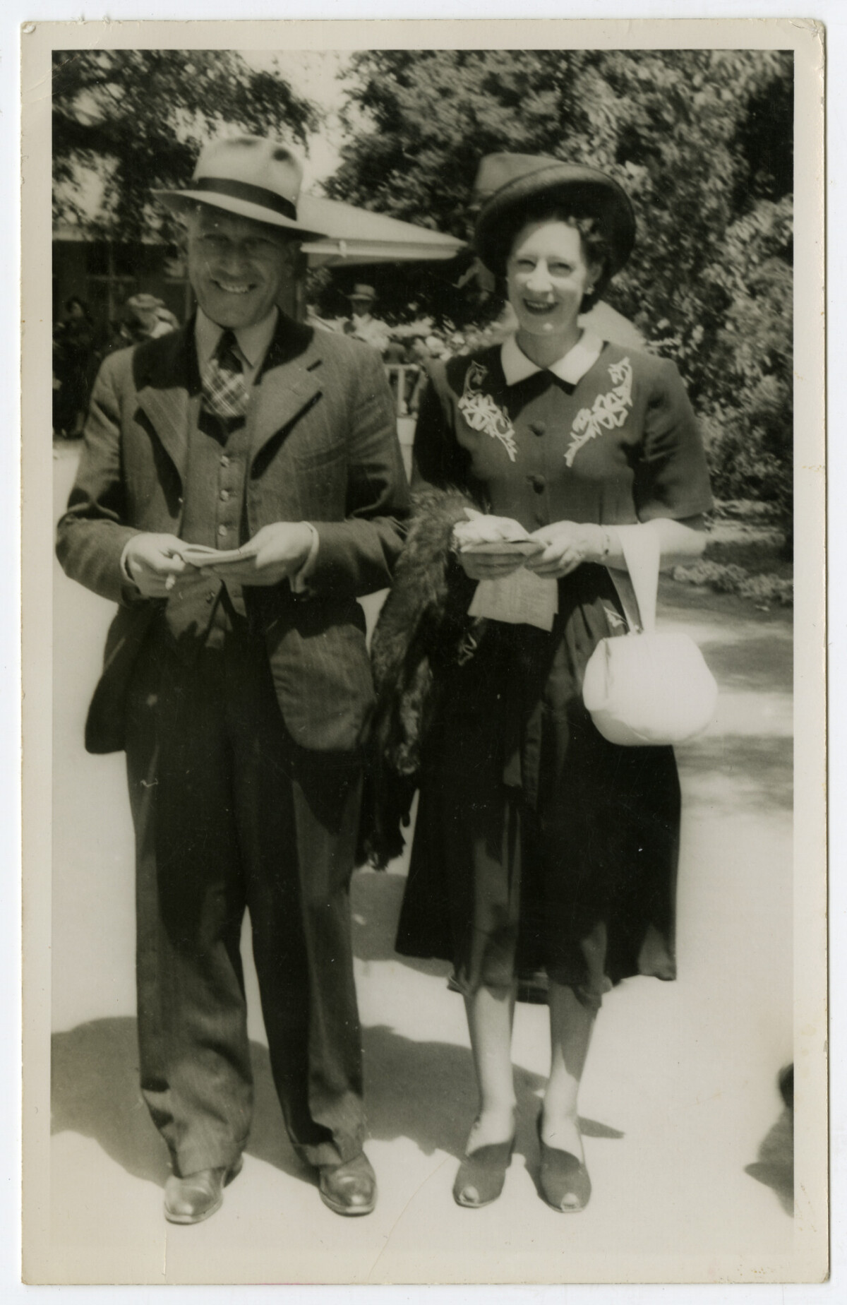 This is a photo of my parents, Win and Ted England at the races (maybe Christchurch or Ashburton) They were always well dressed whenever they went out.