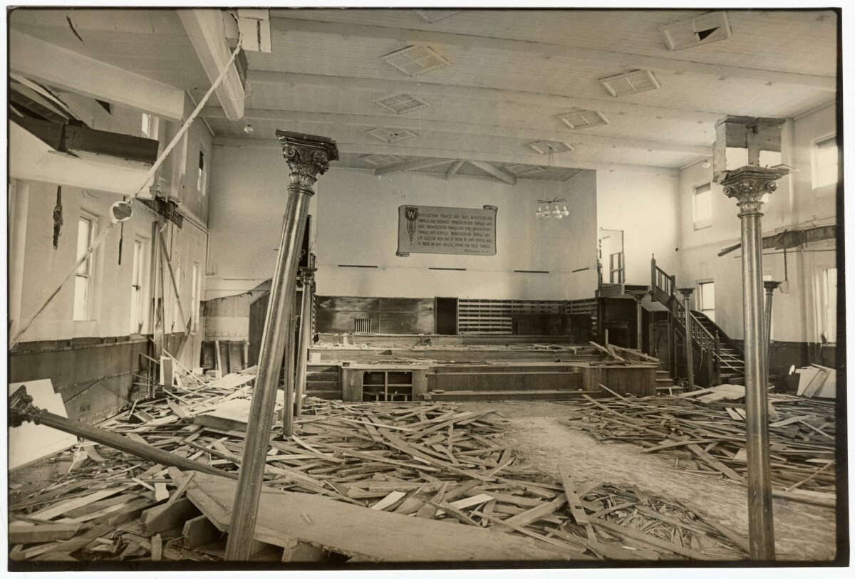The interior of the Salvation Army citadel on Victoria Street near Victoria Square during demolition.