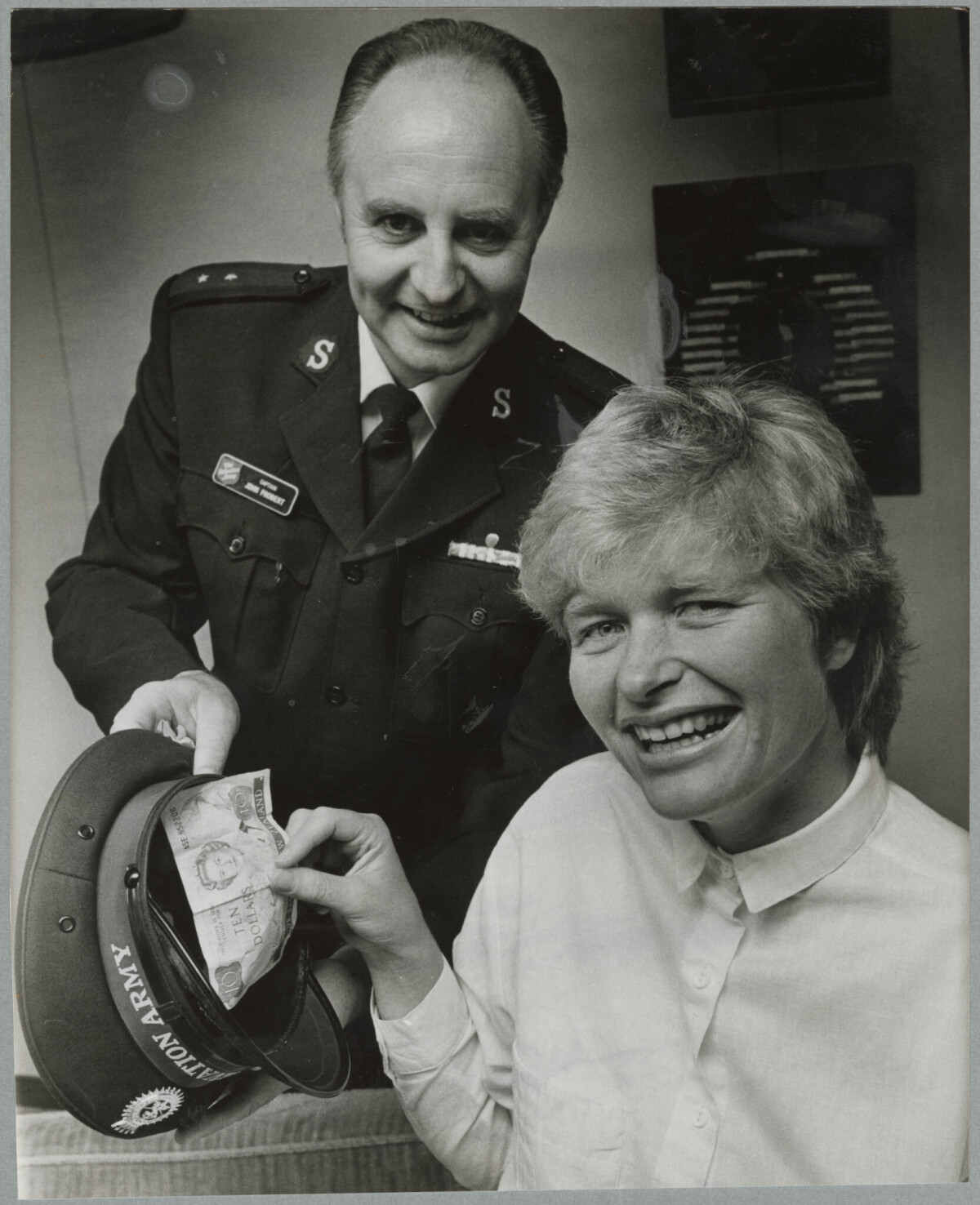 Christchurch Mayor, Vicki Buck, donating to the Salvation Army Red Shield appeal.