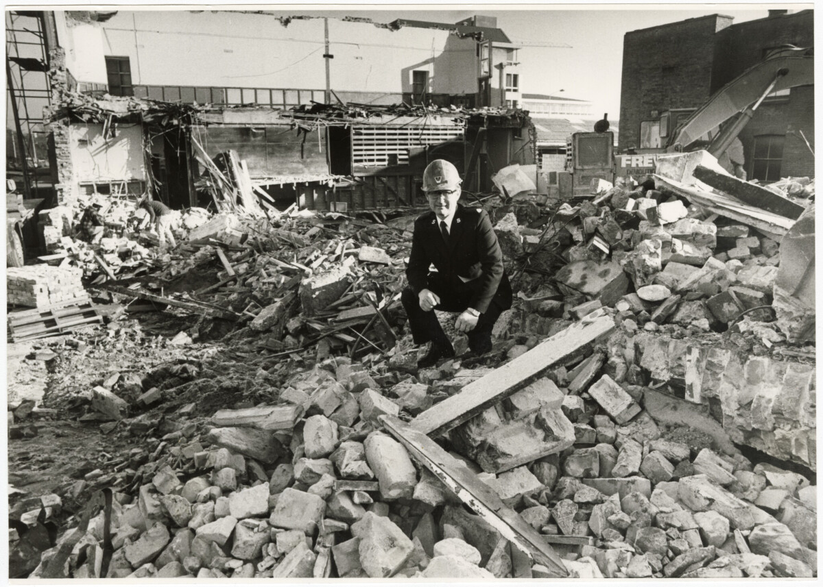 Major Ron Manning of the Salvation Army amidst the demolished old citadel.