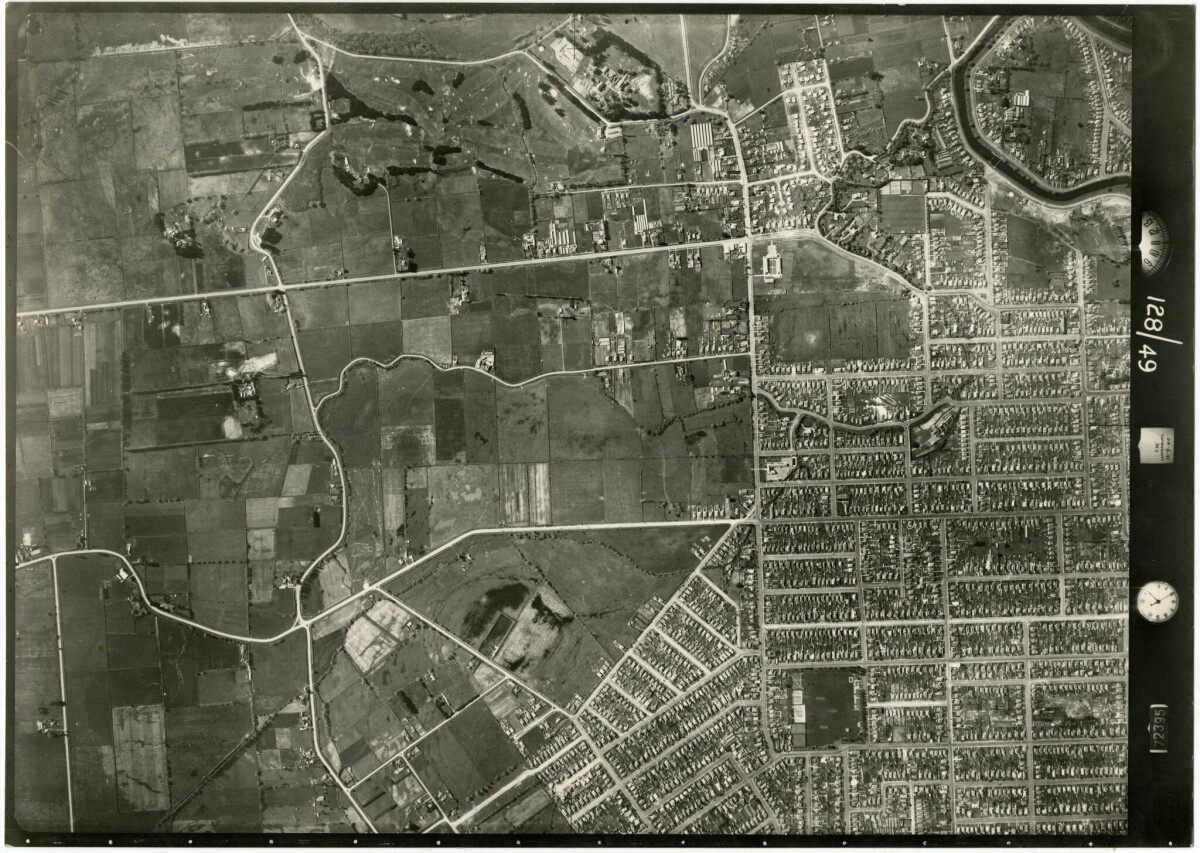 Contributor's note: "Note Shirley Intermediate School at intersection of Marshland and Shirley Road (Predates construction of Shirley Boys' High School next door) and Ernest Adams Poultry farm, now Windsor House, on left where New Brighton road curves."