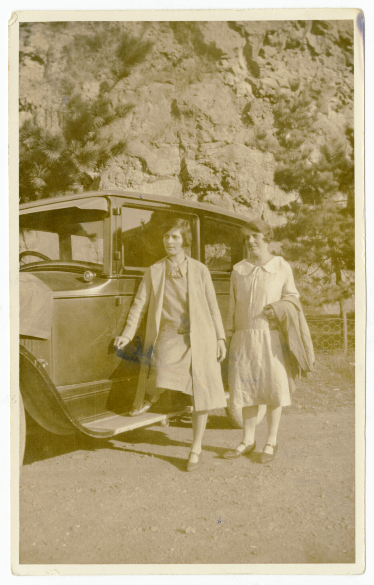 Margosue Penney (front) with an unidentified friend beside an automobile at Sumner.