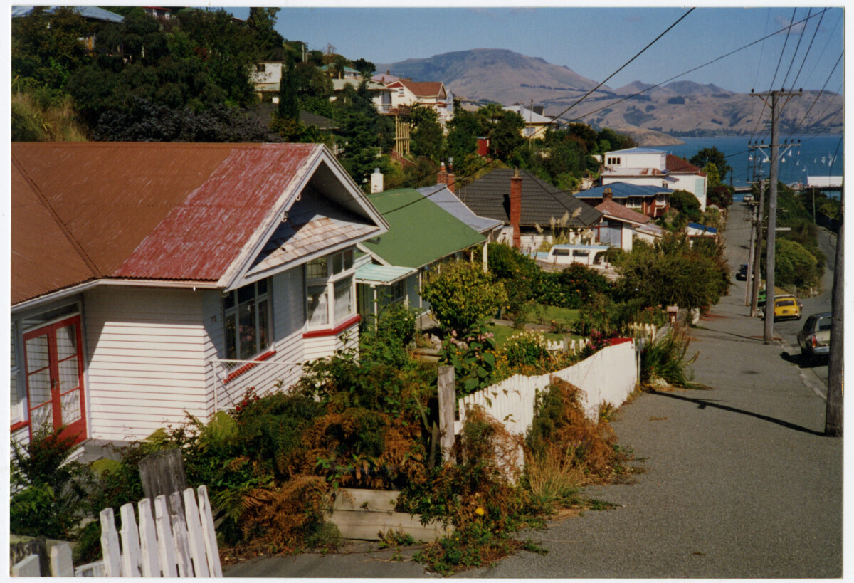 Houses on St Davids Street looking towards Lyttelton Harbour.