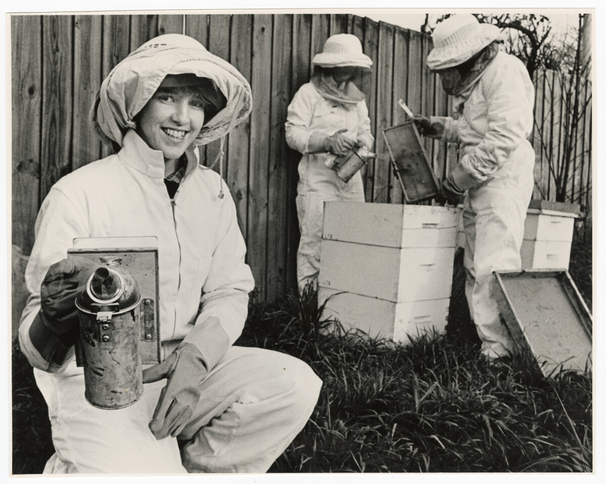Hagley High students practising their bee-keeping skills