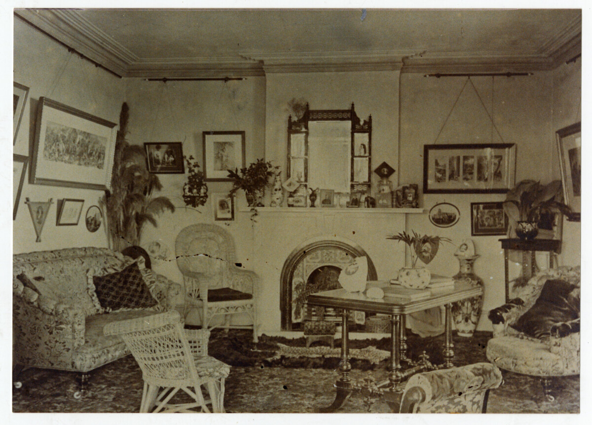 Living room of Peveral Place on Mulcocks Road in Flaxton, home of Edward & Thirza Mulcock and their family of 17 children.