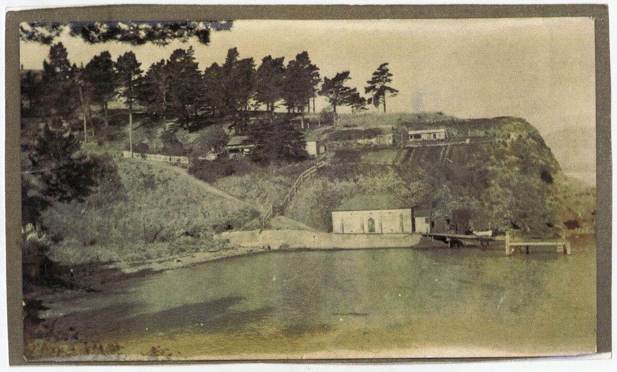 Contributor's note: "My great grandfather was the caretaker at Magazine Bay, Lyttelton. Grandfather Moir was a wonderful gardener and you can see his garden on the slopes. They also had a little pebble pathway to the house."