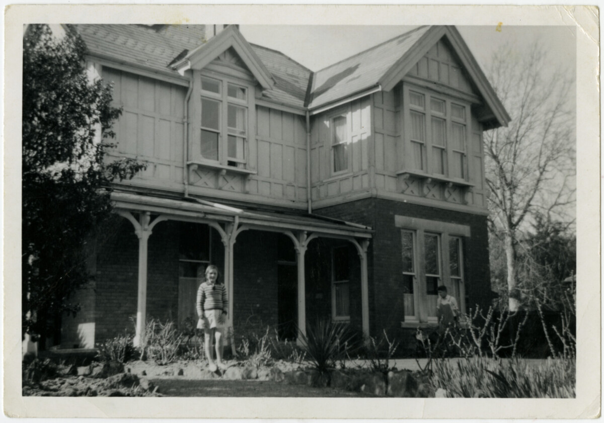 Young girl standing in front of the house on the corner of Park Terrace and Dorset Street.