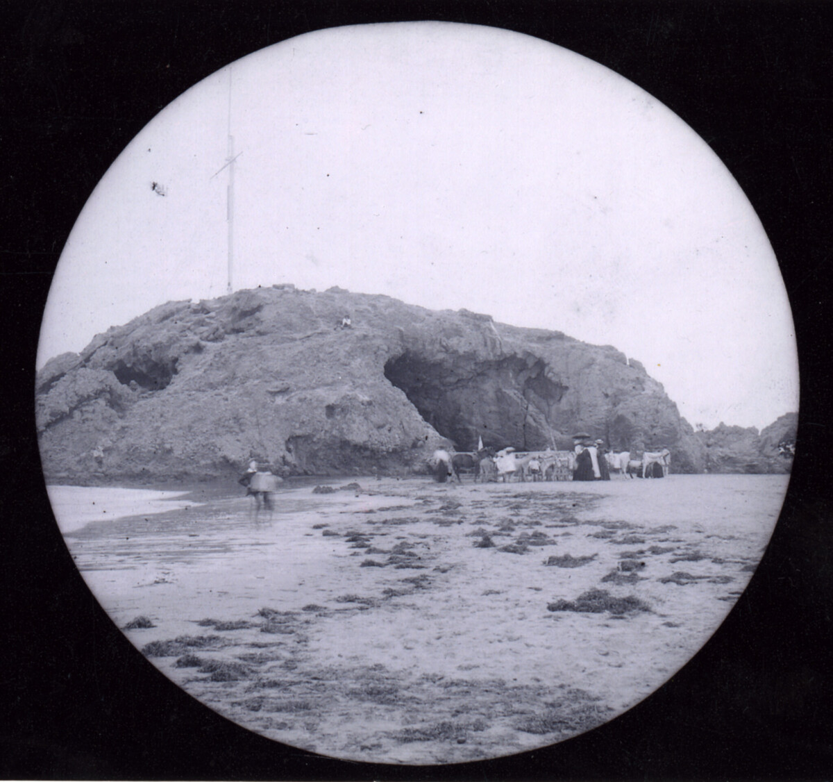 Children taking donkey rides on Sumner beach, looking towards ...