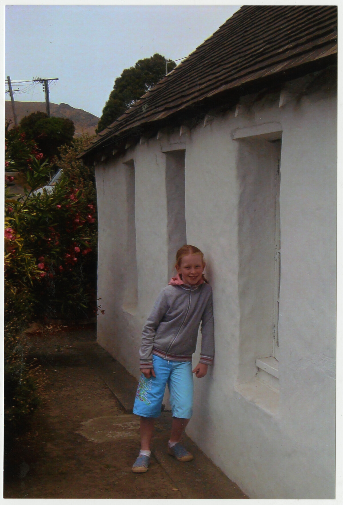 Julia arriving after a walk at the Cob Cottage, Sumner.