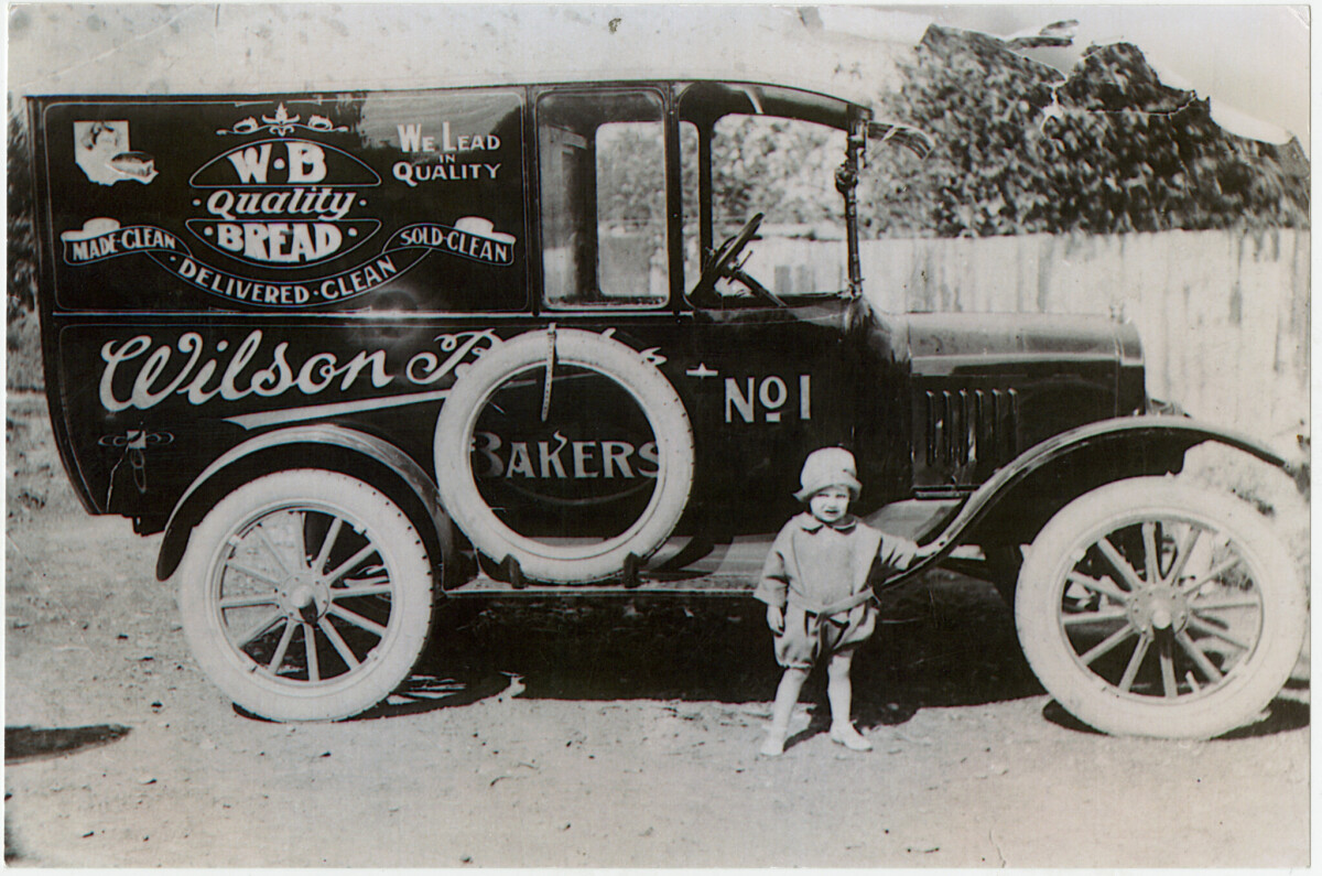 This is my grandfather's bread delivery van. It is thought to have been the first bread delivery van in Christchurch. My father (Francis Wilson) is standing in front of the van. The bakery was in Buffon St, Waltham, Christchurch (no longer standing). I don't have an exact date for the photos but my father looks to be around 18 months - two years & he was born in October 1926.