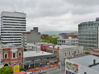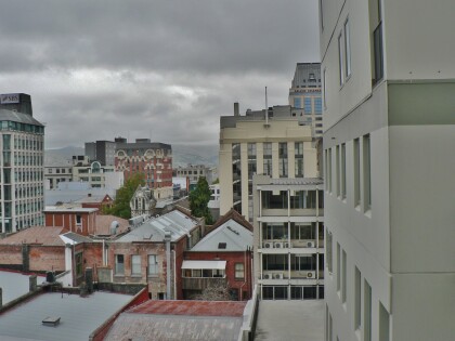 City rooftops and the Port Hills