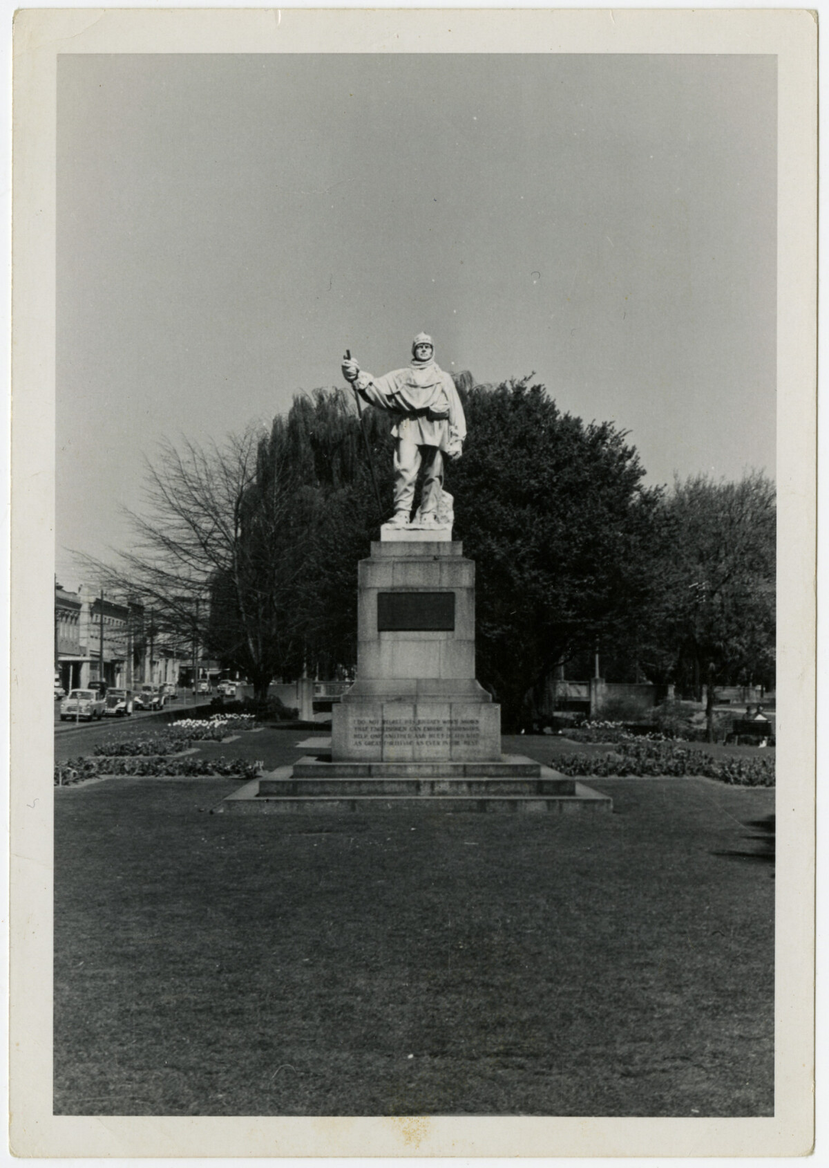 Scott's statue; black and white photo found amongst photos (with others) being thrown away by a family in Auckland. A member of the family had studied here in Christchurch during the 50s / 60s.