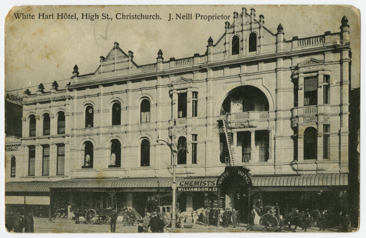 Postcard of the White Hart Hotel, J. Neill Proprietor. The hotel was designed by S. & A Luttrell.