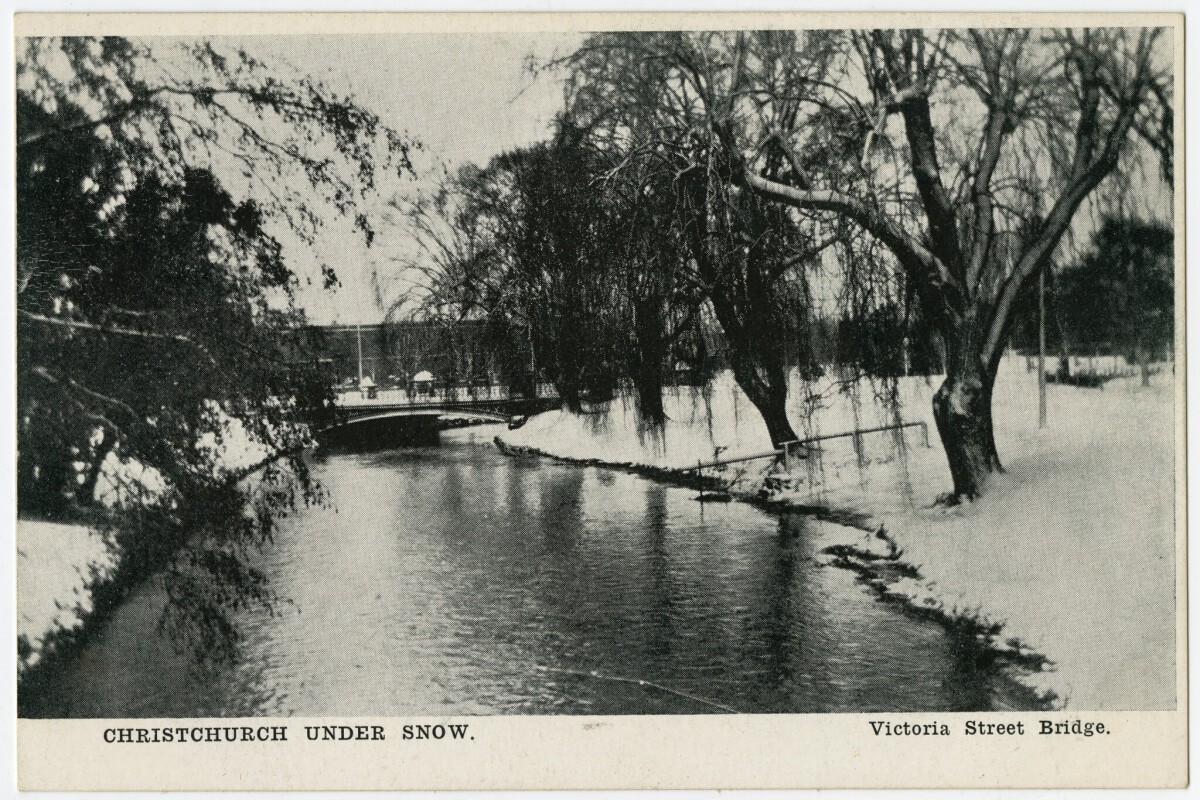 Christchurch Under Snow. Victoria Street Bridge.