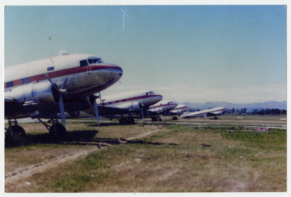 Retired Douglas Dakotas (DC3's) at Christchurch Airport. 1983