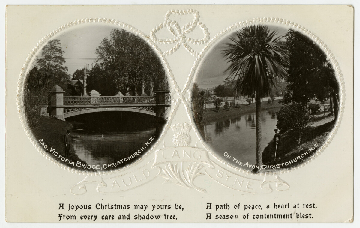 A joyous Christmas. Victoria Bridge. On the Avon, Christchurch, N.Z. Verso - To Pearl, from Julia. Tanner Bros Ltd, No. 268