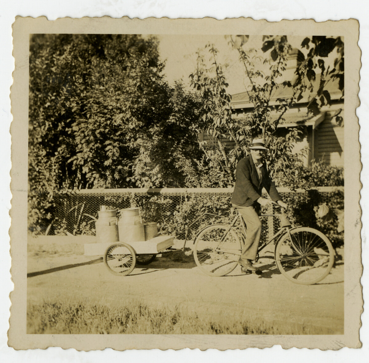 Gordon Marker delivering milk during petrol restrictions.