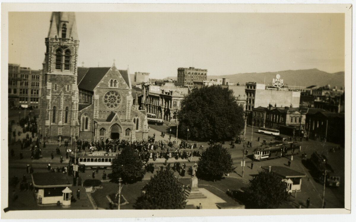 Busy Cathedral Square, the United Service Hotel and Post ...
