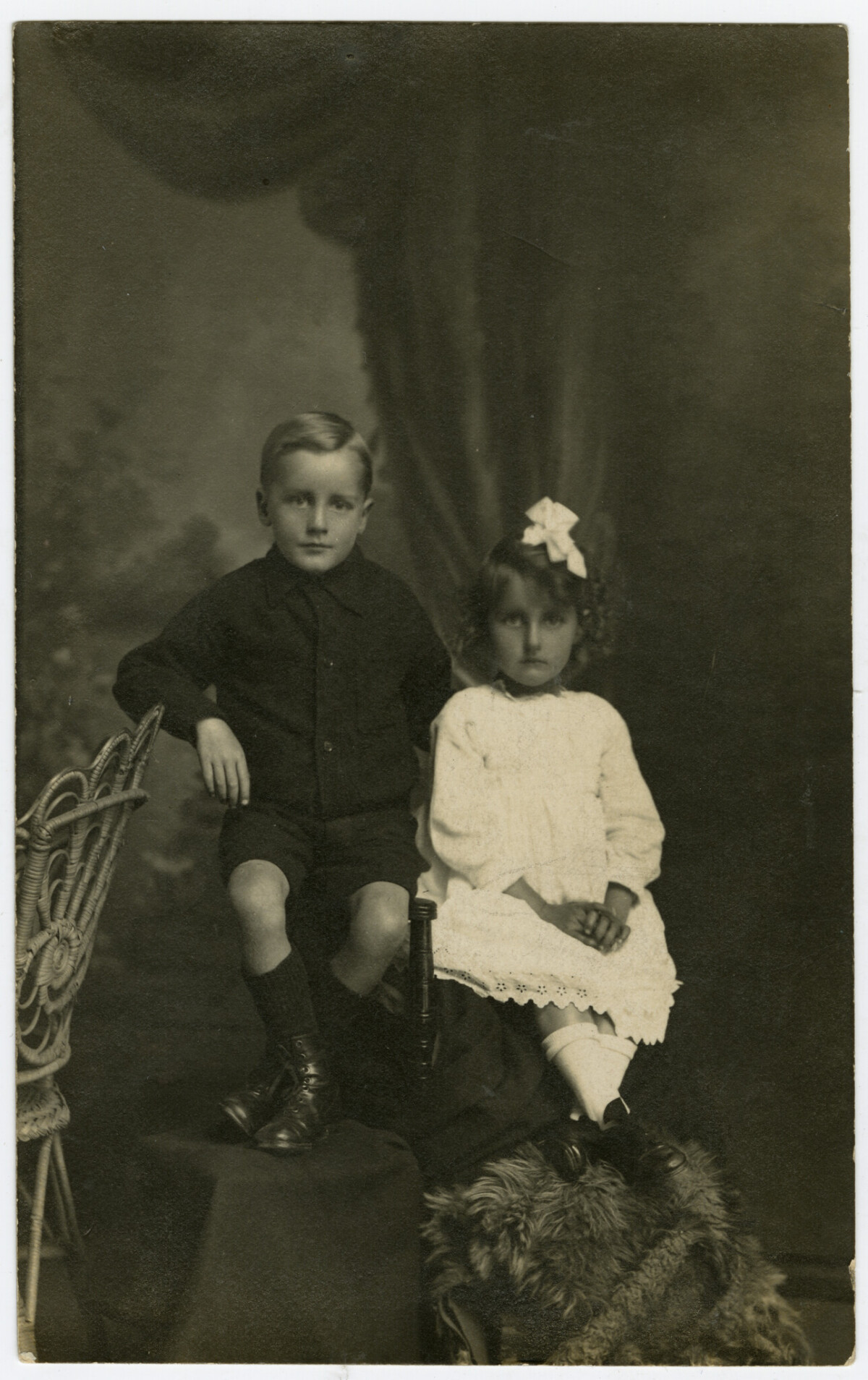 Must have been a studio sitting (in Christchurch). My mother (Mavis Howarth) aged 3 1/2 years and my uncle (William Howarth) aged 5 1/2 years. My grandmother's writing on the back - Alice (Lily) Howarth.