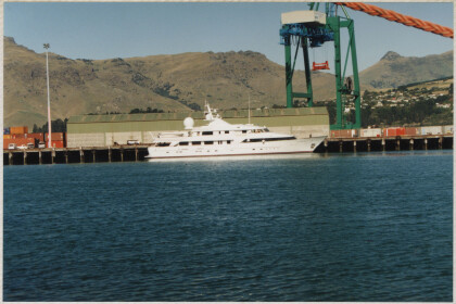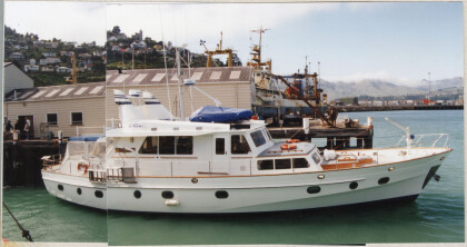 Motor yacht in Lyttelton Harbour.