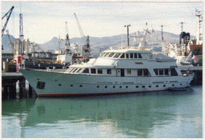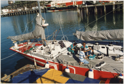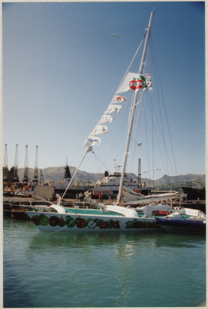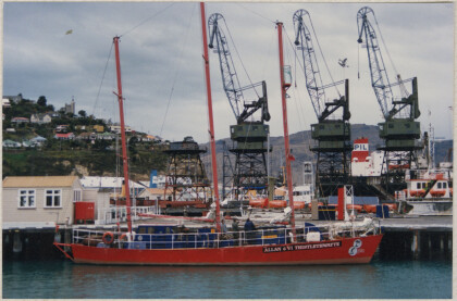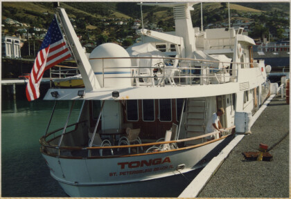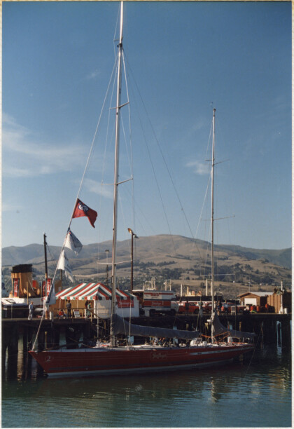 The boat, Tonga, in Lyttelton Harbour.