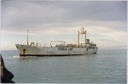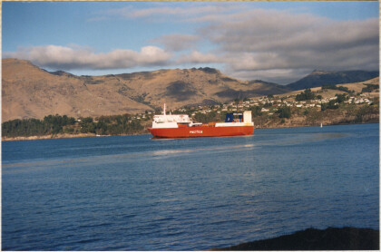 Cargo ship in Lyttelton Harbour.