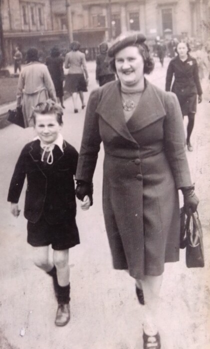 Jessie Payne and her son Ronald walking past Christchurch ...
