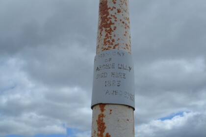 A plaque (replacing the original) on the memorial on the Mount ...