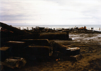 Bulldozer clearing the last of the wooden Pier at New Brighton