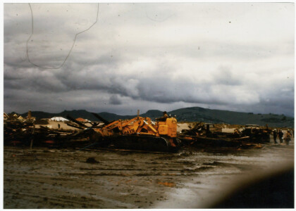 Bulldozers clearing the last of the wooden Pier at New Brighton