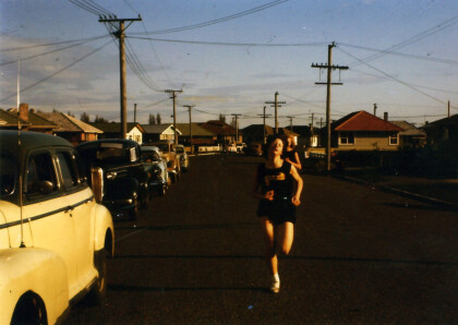 Two women, members of the New Brighton Harrier Club, running ...