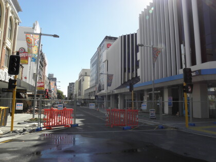 Masonry building damage on Hereford Street.