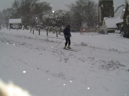Skier on Dyer's Pass, by the village green, during the ...
