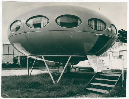 A Futuro, Flying Saucer style house on hillside with the Port ...