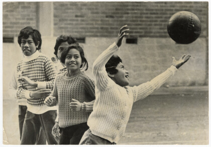 A group of children playing netball at St Bede's College in ...