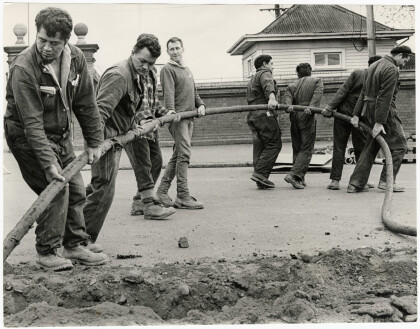 Linemen reclaiming an electricity cable in Lincoln Road for use ...