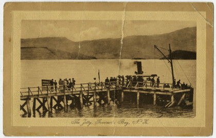 Postcard from a photograph album of Governor's Bay jetty. On ...
