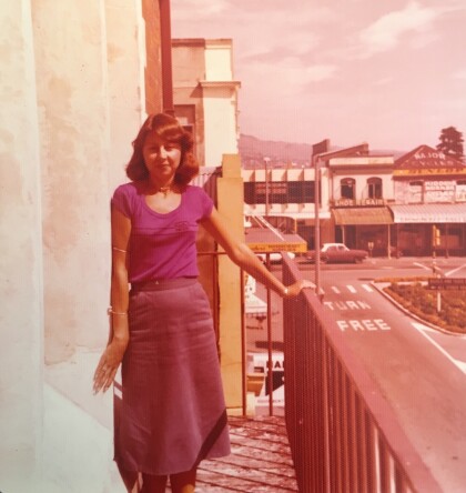 Kathryn Drury on her work balcony at the Christchurch stock exchange on Oxford Terrace