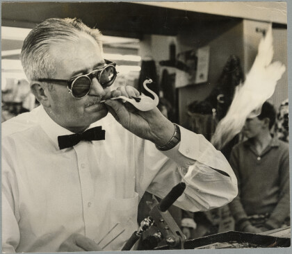 Hugh Proctor gives a demonstration of crafting a glass swan in a ...