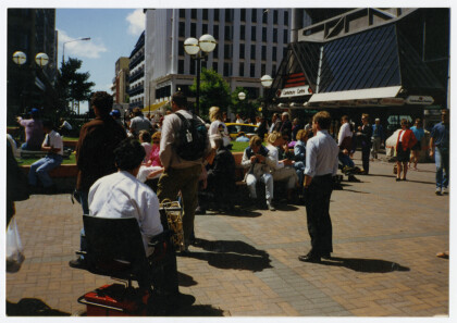 Crowds at Hack Circle in Cashel Street, looking east, near High ...