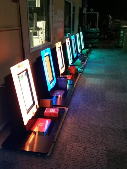 Early morning light display of new library kiosks. These were ...