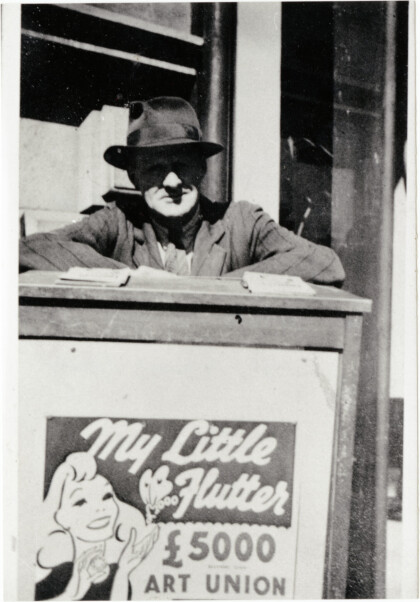 Henry Downes selling Golden Kiwi Art Union tickets. Outside Post ...