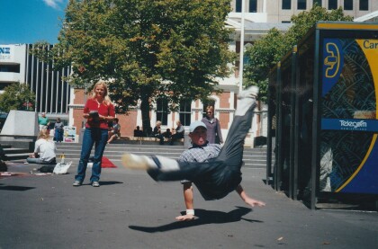 Dion Wall of the Coloured Crew Lockers break dances in Cathedral ...