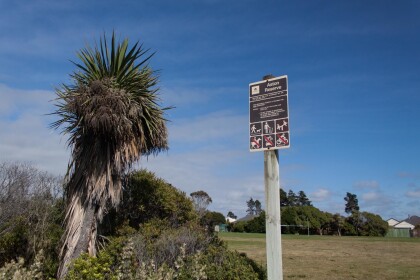 Sign at the entrance to Aston Reserve at Waimairi Beach.