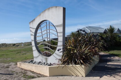 View of a sculpture marking the end of Aston Drive at Waimairi ...